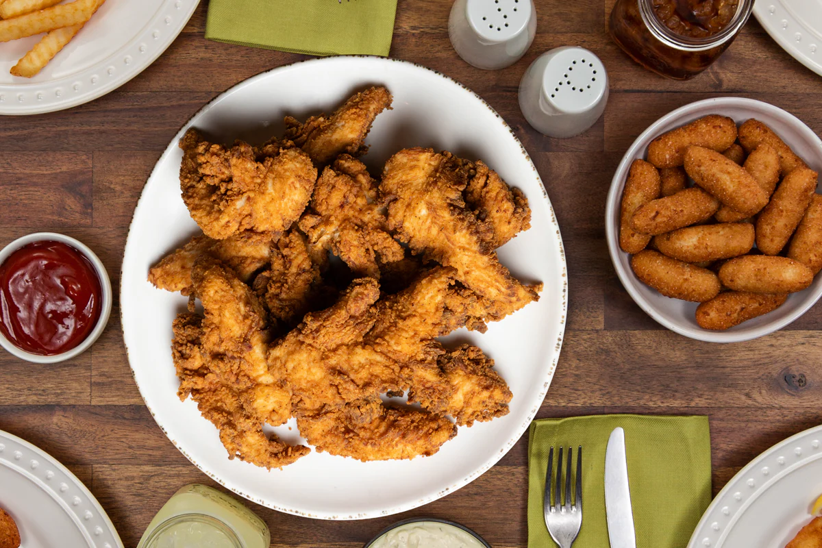 Southern-fried chicken tenders we recommend pairing our retro crinkle fries & slaw